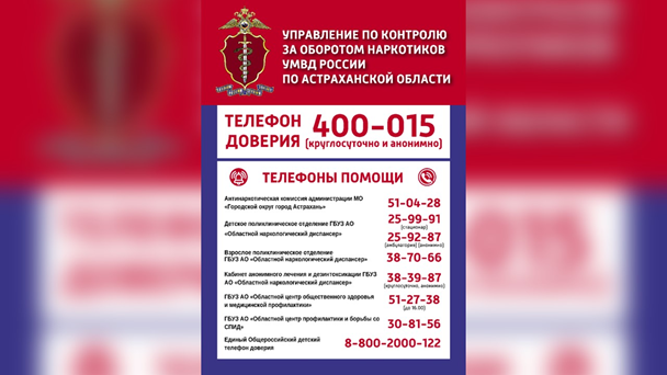 В целях создания в обществе осознанного негативного отношения к незаконному потреблению наркотических средств и психотропных веществ, повышения уровня доверия к правоохранительным органам Управлением по контролю за оборотом наркотиков УМВД России по Астраханской области в 2025 году на территории региона запланировано проведение общероссийской акции «Сообщи, где торгуют смертью» в два этапа: с 24 марта по 4 апреля – первый этап, с 13 по 24 октября 2025 года – второй этап.