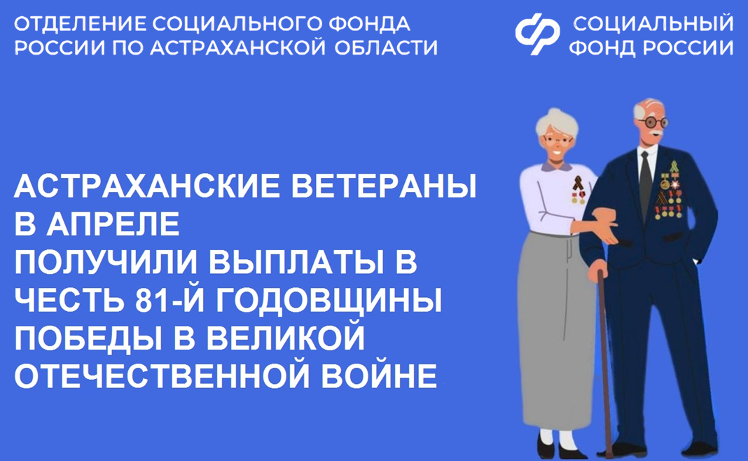 Астраханские ветераны получили ежегодную выплату в честь 81-ой годовщины Победы в Великой Отечественной войне. Средства направило региональное Отделение Социального фонда России.