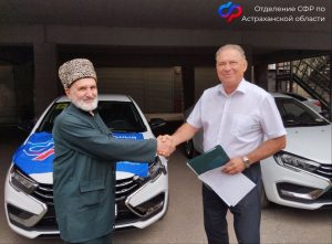 Двое астраханцев с поражением опорно-двигательного аппарата стали получателями новых автомобилей Лада Гранта в спецкомплектации от Отделения Социального фонда России по Астраханской области. Ключи от транспортных средств вручил управляющий региональным Отделением Соцфонда Сергей Кодюшев.