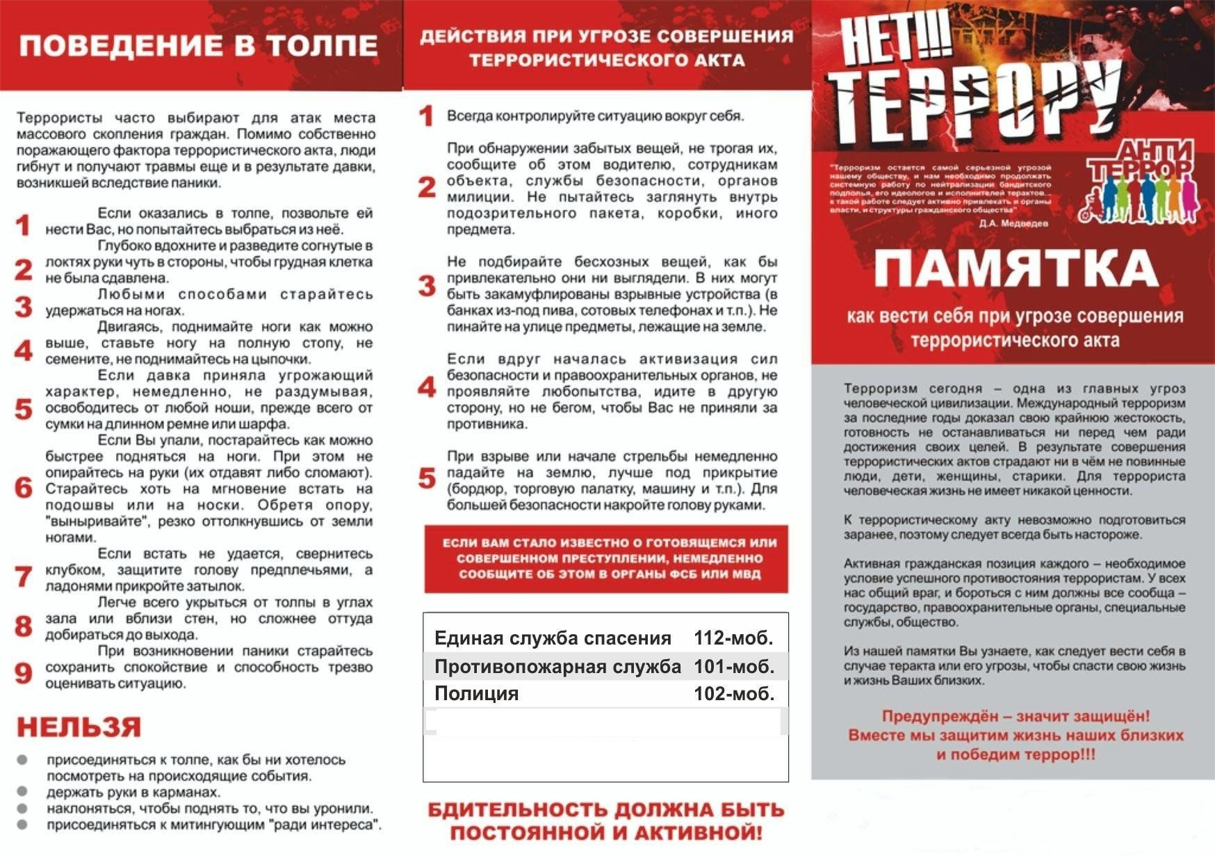 ПАМЯТКА как вести себя при угрозе совершения террористического акта